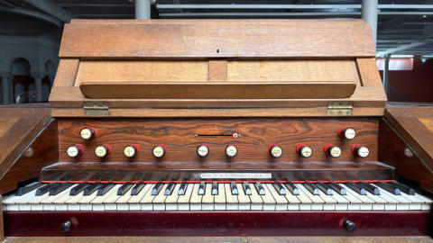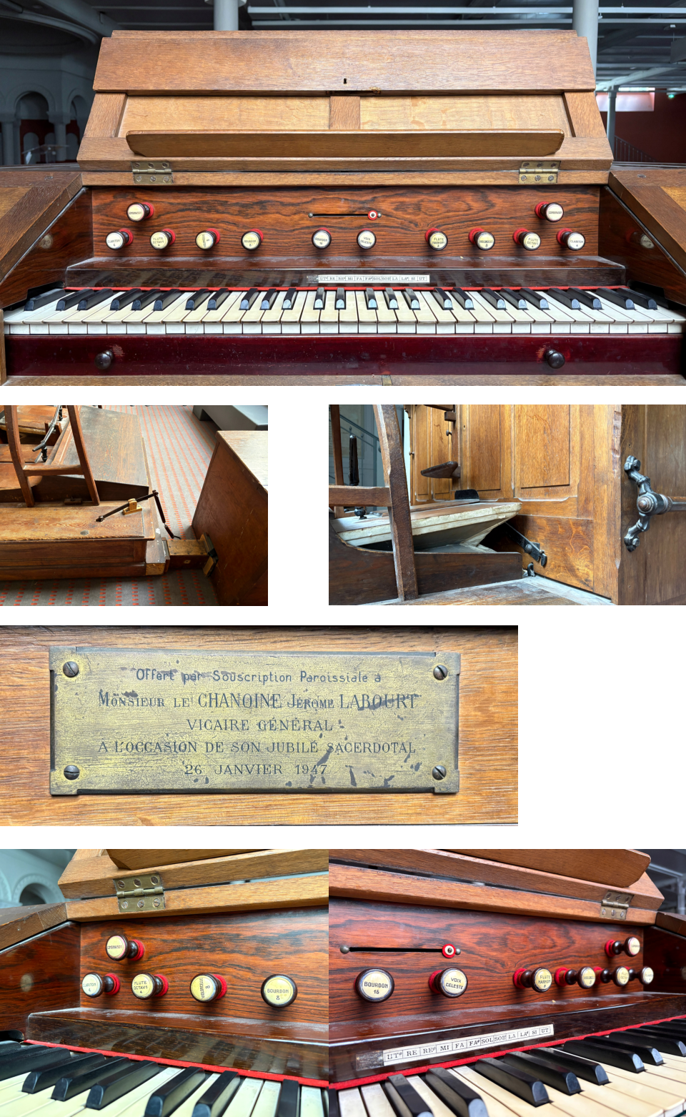 CompositionBourdon16Bourdon8Voix CélesteFlûte harmonique 8Violoncelle 8 B/DFlûte octav 4 B/DClairon 4 B/DCombinaison B/DVidéoAntoine DoucyPhotos: Jeroen de HaanA la demande de nombreuses paroisses, qui n'avaient pas les moyens de se fournir un orgue à tuyaux, Louis Debierre conçut un instrument ressemblant à un gros harmonium, mais qui en fait contient des astuces et innovations spectaculaires. Ainsi, partant du principe que dans les basses, on n'utilise jamais de notes conjointes, les tuyaux les plus graves peuvent donner 3 notes différentes, par un ingénieux système de petits soufflets. Ce qui fait évidemment gagner du volume. De même, il divise par deux la longueur des jeux de fonds, en jouant sur la pression d'air et les embouchures. Bien sûr, la qualité de son n'est pas la même qu'un vrai jeu de 8 pieds. Les tuyaux de la trompette sont merveilleusement coudés pour entrer dans le meuble. Debierre en fut fabriqué environ 500, que l'on trouve surtout en Loire-Atlantique, mais il y en eut beaucoup installés dans les anciennes colonies françaises, avec un traitement spécial "tropicalisé". (texte : Roger Martin)Un autre example du son d’un instrument polyphone à Schoonhoven, Pays-Bas
