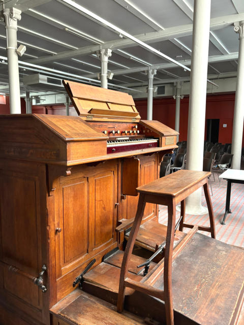 L’orgue de la crypte est un orgue du type polyphone, construit par Louis Debierre. La trompette est remplacée par le "clariton", une sorte de plein-jeu progressif avec tierce (info: Xavier Lebrun, facebook)Il y a la possibilité d'enregistrer une combinaison grâce à un système simple mais efficace. Le clavier est transpositeur une quinte au dessus et une tierce en-dessous. Plus d’infoMerci à Antoine Doucy pour les informations.