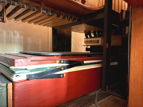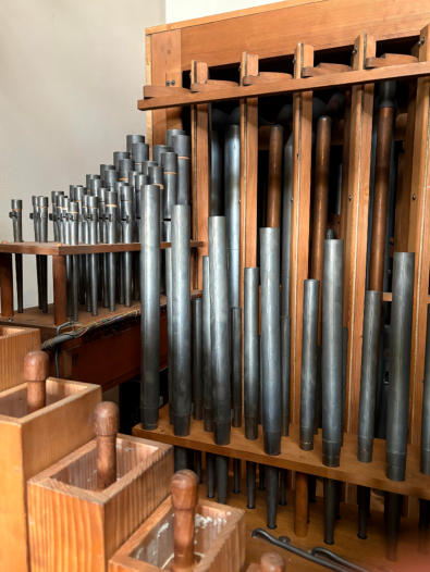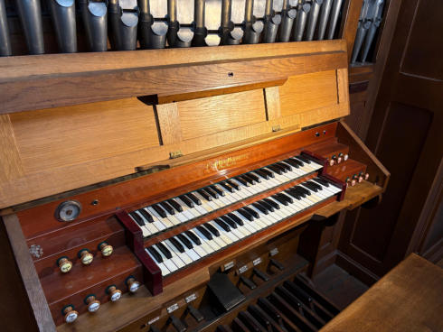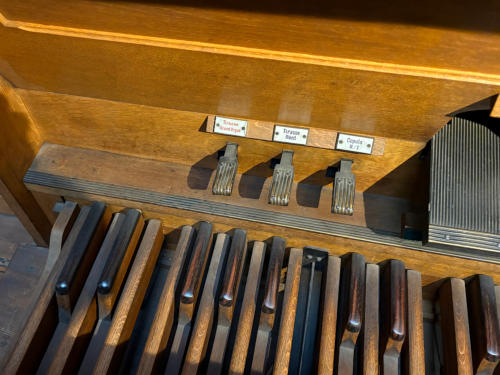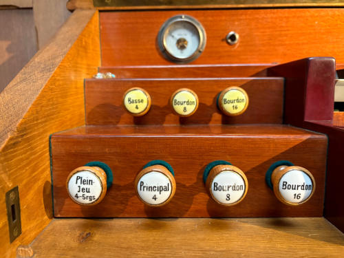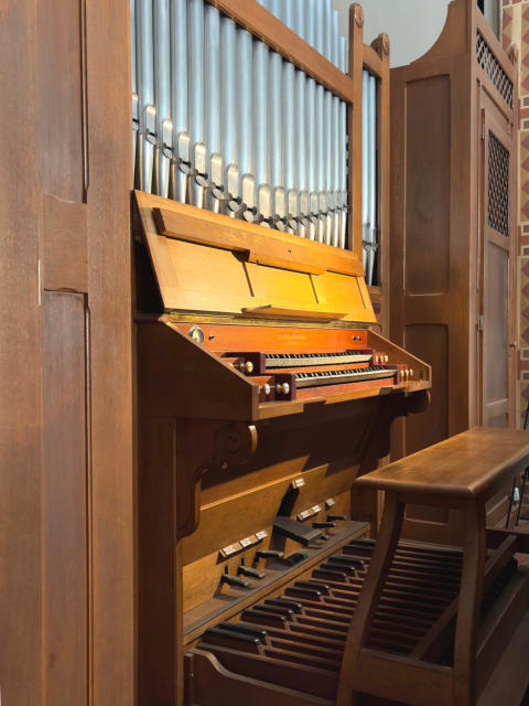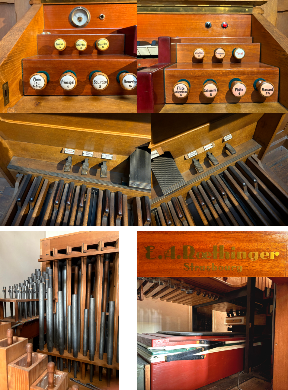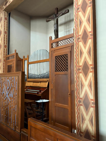 E6Cet orgue fut construit par Edmond-Alexandre Roethinger de Strasbourg-Schiltigheim en 1939. L’orgue se trouvait à l’origine en tribune, sur la flanc de la chapelle. Voir un article écrit par Félix Raugel (merci à Olivier Geoffroy). Il a été descendu et placé dans le choeur en 1984 par François Sebire en 1984. Maintenant, l’orgue est installé à la chapelle Sainte Thérèse.Restauration en 2024 par l'antenne parisienne de Dargassies. Il n'y a pas de changement technique.