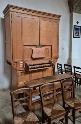 C4L’instrument, construit à l’origine pour la Salle Berlioz (Rue de Clichy à Paris) , fut conçu par Aristide Cavaillé-Coll en 1890.En 1909, il fut transféré à l’église Ste Geneviève, et modifiée par Charles Mutin.En 1955, le facteur Erwin Muller transforma l’Octavin du Grand-Orgue en Doublette.En 1981, le facteur Barbéris fut chargé de réaliser des travaux sur la mécanique.L’orgue est restauré partiellement en 2016 par Bernard Cogez.En 2025, travaux par Yves Koenig:Mutin ne laissera aucun élément en état. Le buffet, peint en faux-chêne, les sommiers et même la tuyauterie sera modifiée. Il en sera de même pour la disposition intérieure, donnant des transmissions mécaniques complexes et peu fiables. Le bénéfice de la machine Barker en est presque dérisoire. L’orgue est composé de vingt-deux jeux répartis sur trois claviers et le pédalier. Le Positif et le Récit sont expressifs. Tous les sommiers sont à règles.Cet orgue doit retrouver la cohérence initiale perdue depuis plus d’un siècle. La disposition intérieure sera repensée pour obtenir un cheminement mécanique simple et lisible. Toute la mécanique de notes et de jeux sera reconstruite selon les méthodes de Cavaillé-Coll. Enfin, la palette sonore de l’instrument se verra augmentée d’un Quintaton 16’, d’une Clarinette 8’, d’un Clairon 4’ et d’un Octavin 2’. L’orgue sera entièrement remonté et réinstallé sur sa tribune en début d’année 2026.Il y a un orgue de remplacement temporaire, mis à disposition en prêt par le facteur d’orgue. Cest l'ancien Saby du CNSM de Lyon.