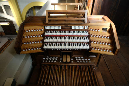 C3Terminée en 1921, l’église Saint-Dominique possédait une vaste tribune pour accueillir un orgue. On ne sait pas si la paroisse avait initialement projeté de faire construire un orgue neuf, mais en 1926 il fut décidé d’acquérir l’instrument de la salle des Concerts Touche (Boulevard de Strasbourg, Paris, 10e arrondissement). Il s’agissait d’un orgue de 2 claviers et pédalier, de 19 jeux, construit par la maison Mutin-Cavaillé-Coll. Il fut installé à Saint-Dominique par Gaston Gutschenritter. Cet instrument possédait des sonorités fines et délicates mais, peu après son installation, sa puissance sonore fut jugée nettement insuffisante pour le volume intérieur de l’église et la taille de sa coupole. Dès la fin des années 30, la paroisse envisagea de le remplacer, projet retardé par la guerre. D’heureuses circonstances aboutirent à l’acquisition d’un orgue de salon (3 claviers, 30 jeux) appartenant au comte Christian Bertier de Sauvigny (1864-1939).L’instrument avait été construit en 1904 par la maison J. Merklin & Cie de Paris, dirigée par Joseph Gutschenritter. Son buffet en noyé est très ouvragé, de style Louis XIV. Son dessin peu commun n’est pas sans rappeler celui du grand orgue de l’église Saint-Sulpice. L’instrument a été conçu avec un goût très sûr et réalisé avec un soin exceptionnel. Moderne pour son époque, il était équipé du système de transmission pneumatique tubulaire qui avait été mis au point par la maison Merklin à la fin du 19e siècle. L’instrument était placé dans un spacieux atelier d’artiste dans un hôtel particulier situé rue Legendre dans le 17e arrondissement. Au début des années 1920, le Comte Bertier quitta la rue Legendre pour s’installer dans un hôtel particulier plus spacieux rue de Poitiers. Une salle fut spécialement construite dans la cour de ce dernier pour y accueillir l’orgue. Tout en gardant son aspect général la façade du buffet fut légèrement remaniée et adaptée aux dimensions de cette nouvelle salle, le comte Bertier profita de ce déménagement pour augmenter l’instrument de trois nouveaux jeux. Ce déménagement et ces transformations ont été effectués par Joseph et Gaston Gutschenritter (père et fils). Haut lieu musical, des concerts y étaient régulièrement organisés chaque année (Gigout, Dallier, Dupré, Duruflé, Fleury, Litaize, Langlais…).L’instrument des Concerts Touche fut alors installé à l’église Saint-Antoine de Padoue (Paris 15) tandis que celui du comte Bertier pris place à Saint-Dominique en 1944-45. C’est Jules Isambart, facteur d’orgues, et Jean Perroux, harmoniste, tous deux anciens ouvriers de l’illustre maison Cavaillé-Coll, qui furent chargés de son installation. L’harmoniste fit au mieux selon les moyens financiers et matériels de l’époque pour adapter l’instrument à son nouveau lieu d’adoption. L’orgue fut inauguré en octobre 1945 par Marcel Dupré.À la fin des années 50, l’instrument montrait des signes de fatigue et réclamait une restauration. Des travaux furent entrepris en 1961. Les sommiers pneumatiques furent conservés mais les transmissions ont été électrifiées, cela permis d’éloigner la console du buffet en la plaçant sur un coté de la tribune. Cette restauration, menée par Robert Masset (successeur de Gaston Gutschenritter), a profondément modifié le style de l’orgue. Son style initial, ultra symphonique ne répondait plus au gout de l’époque. La composition des jeux et leur harmonisation furent modifiés dans le style néoclassique, esthétique réclamant des sonorités plus claires et aiguës. L’instrument fut inauguré en 1962 par Pierre Cochereau.En 2002, Marc Hedelin restaure tous les sommiers pneumatiques et replace la console à son emplacement d’origine, devant le buffet.De 2019 à 2021, Bernard Dargassies et ses associés entreprennent une importante restauration : •restauration des gosiers•restauration des tuyaux de façade•remplacement de la traction électrique des années 60 par un système numérique•console déportée à nouveau sur le coté de la tribune, remplacement des commandes de jeux (langues de chat) par des tirants en bois avec porcelaine.•ajout d’un combinateur et d’une coupure pédale.•dépoussiérage de la tuyauterie et des faux sommiers.•modifications de la composition des jeux et harmonisation dans le but de redonner une couleur symphonique à l’instrument, avec également pour souci d’améliorer les apports néoclassiques des années 60.•installation d’une trompette en chamade sur le toit de l’orgue.L’instrument est inauguré en octobre 2021 par Julien Lucquiaud, organiste titulaire.Texte: Julien Lucquiaud, organiste titulaire Vidéo